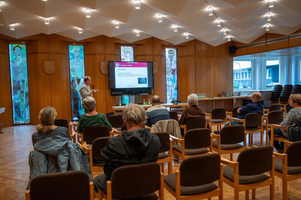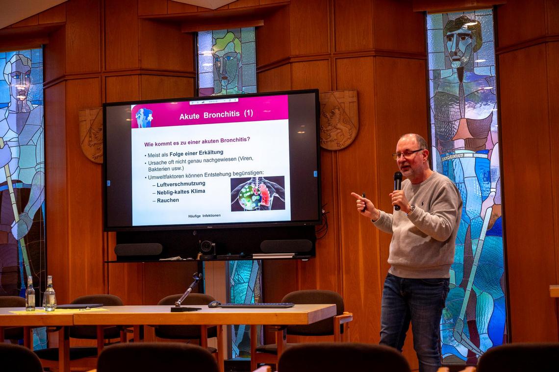 Zum Auftakt informierte Apotheker Christoph Rheinheimer von der Rochus Apotheke über Infektionskrankheiten, deren Ursachen und wirksame Präventionsmaßnahmen.