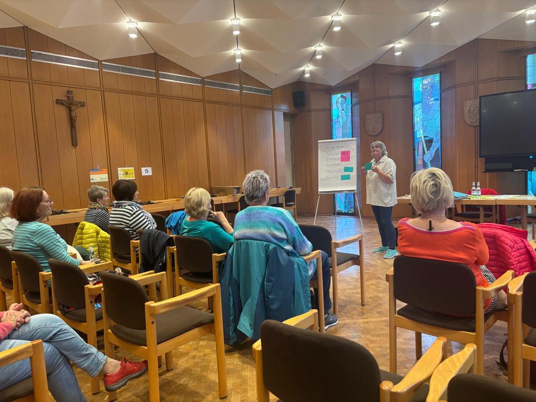 Der Mittwoch widmete sich dem Thema Demenz. Silke Jene, Demenzbeauftragte am Kreiskrankenhaus St. Ingbert, berichtete über Krankheitsverlauf und Unterstützungsangebote für Angehörige. Anschließend zeigte Physiotherapeutin Kathrin Hoyer vom Kreiskrankenhaus St. Ingbert praktische Entlastungs- und Entspannungstechniken.