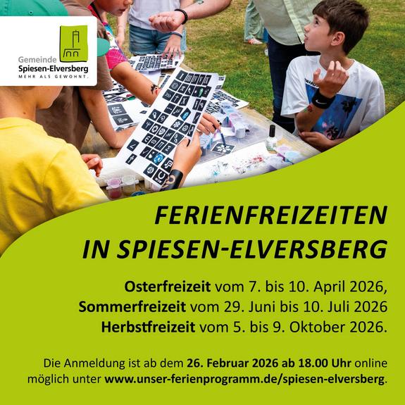 Auch im Jahr 2026 bietet die Gemeinde Spiesen-Elversberg wieder abwechslungsreiche Ferienfreizeiten für Kinder im Alter von 6...