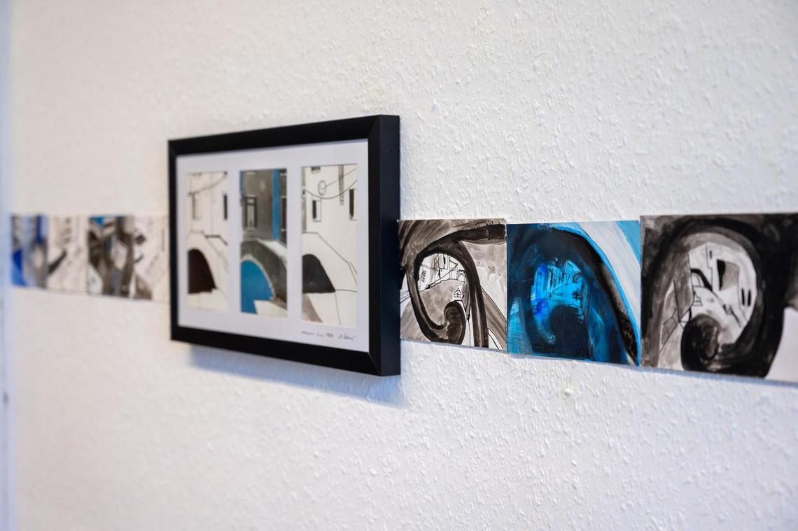Die Ausstellung, die noch bis zum 24. April 2026 zu sehen ist, bietet einen umfassenden Einblick in Kolarićs künstlerisches Schaffen. Ihre Arbeiten verbinden auf eindrucksvolle Weise Zeichnung und Malerei mit Fotografie und Video. Besonders hervorzuheben ist die Werkgruppe stattAnsichten©, die zugleich als eine Art künstlerischer Reisebericht gelesen werden kann. In ihr verarbeitet Kolarić Eindrücke aus verschiedenen Ländern und Kulturen – darunter unter anderem Afrika und Kroatien. Durch ihre eigens entwickelte Technik entstehen dabei vielschichtige Bildräume, die reale Orte mit subjektiven Wahrnehmungen verbinden.