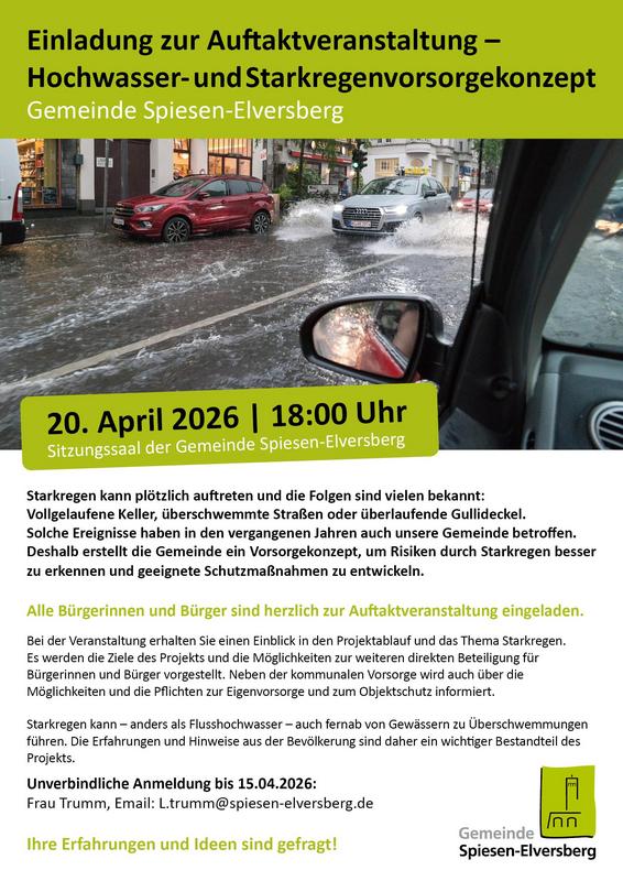 Zum Projektstart für die Öffentlichkeit lädt die Gemeinde alle Interessierten zu einer Auftaktveranstaltung am 20. April 2026 um 18:00 Uhr in den Sitzungssaal der Gemeinde Spiesen-Elversberg ein.