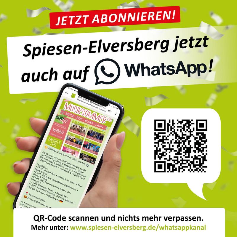 als Ergänzung zur bisherigen Presse- und Öffentlichkeitsarbeit kommuniziert die Gemeinde Spiesen-Elversberg ab sofort auch über den offiziellen WhatsApp-Kanal der Gemeindeverwaltung. Ziel ist es, Bürgerinnen und Bürger künftig noch schneller und direkter mit wichtigen Informationen und Veranstaltungshinweisen zu versorgen.